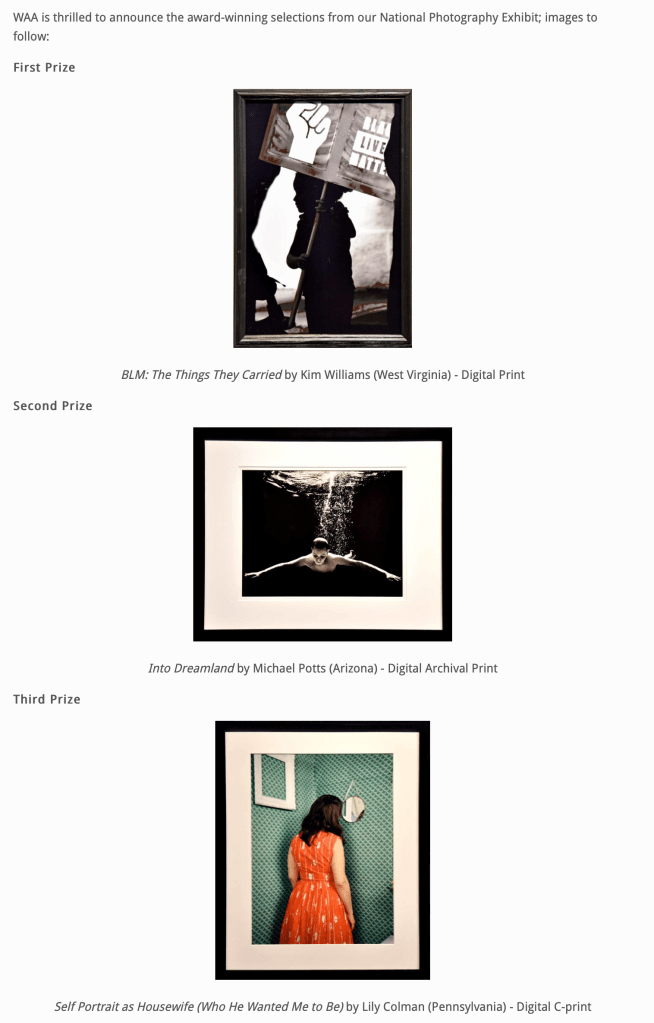 Today seems a good day to launch this second webpage. Last evening (October-23rd) I received a second placing for the Wickford Art Association National Photography Exhibit (see image below). This is my highest award to date and while I feel we should do art for art’s sake it’s also nice to know that others appreciate your work.