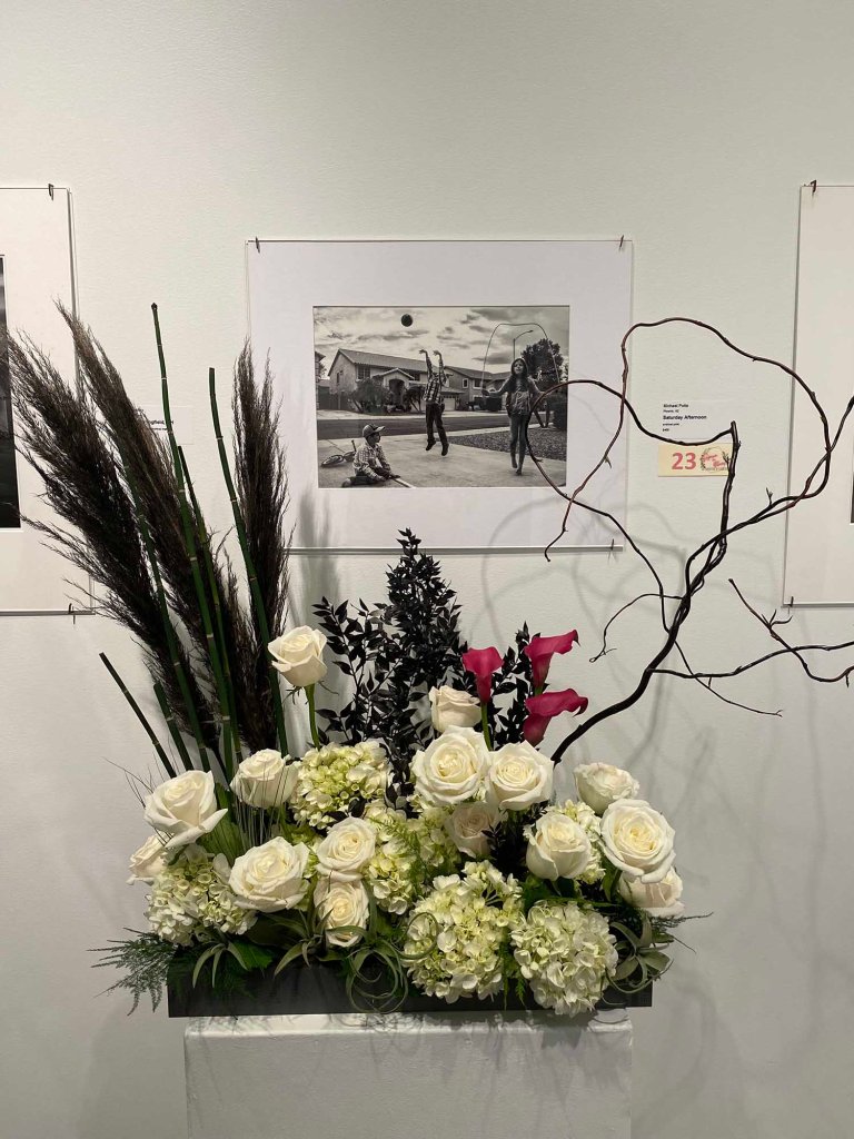“As you may know, the Spiva in Bloom event happened recently here at Spiva. This is where area florists create an arrangement inspired by one or more of the PhotoSpiva pieces. I wanted to let you know that one of your pieces was selected for an interpretation by an area florist.”