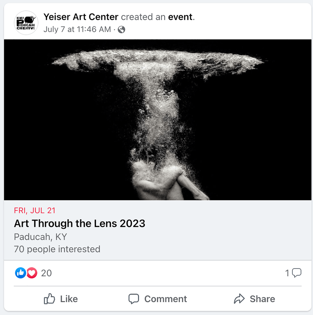 Not only was “Rebirth” one of 53 images from 653 submissions to make it into The Yeiser Art Center’s annual “Art Through the Lens” show, but they used it as the face of their show. Don’t know if I’ll win anything, but it’s nice to be selected for promo; means SOMEone liked it : )