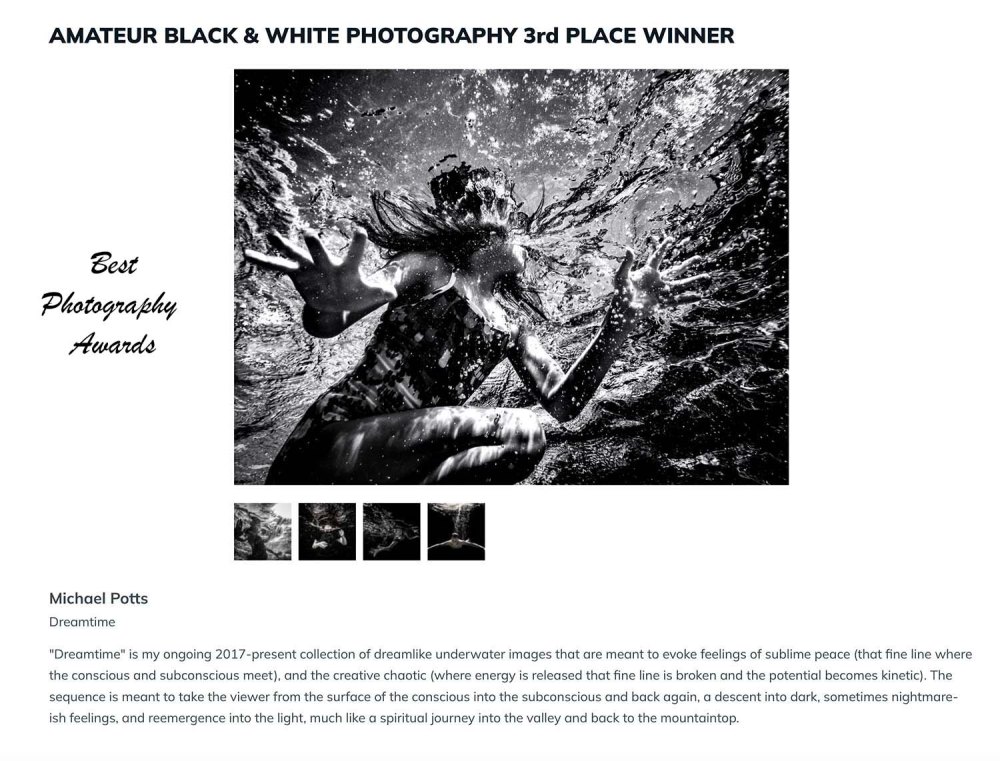 The Best Photography Awards were announced yesterday, and I’m pleased that Dreamtime (series) took Bronze in the amateur black and white category.