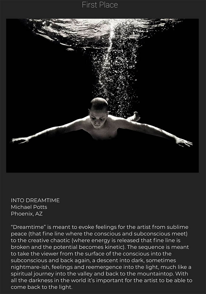 I am VERY pleased to have been awarded First Place in the show with my classic “Into Dreamtime” image.